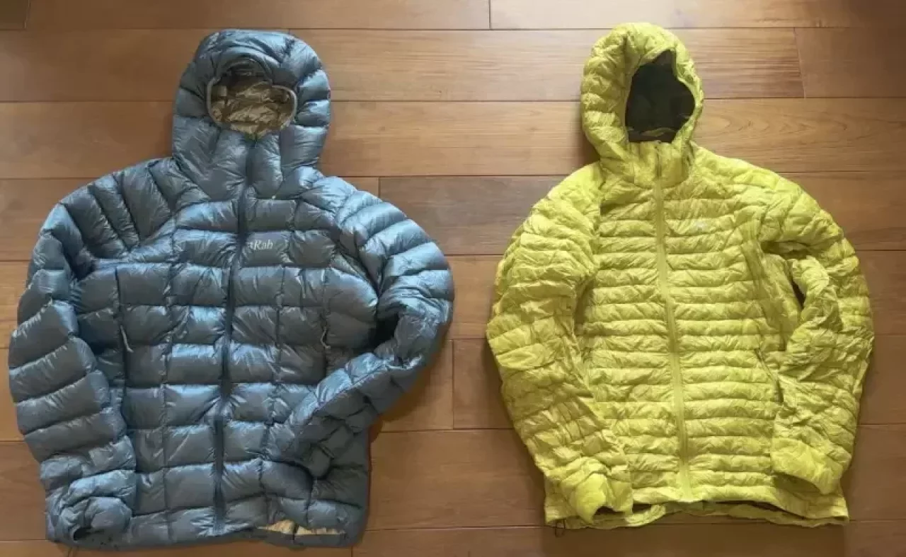 ダウンジャケットと化繊ジャケットを比べると、ダウンは保温力が高いが濡れに弱く、化繊は濡れに強くて耐久性があるがダウンよりも保温力が少し低いという特徴があります。