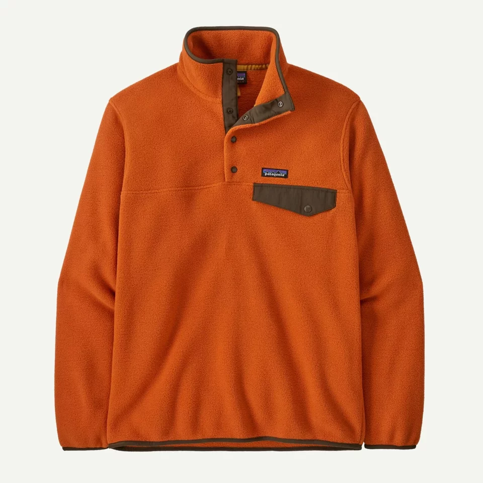特徴:ライトウェイト仕様のSynchilla®フリース(8-oz 相当)を使用。スナップTプルオーバースタイル。四つボタン前立て+胸ポケット、袖口・裾にスパンデックスバインディング。水分をウィック(吸湿)し乾きも速いという記載あり。