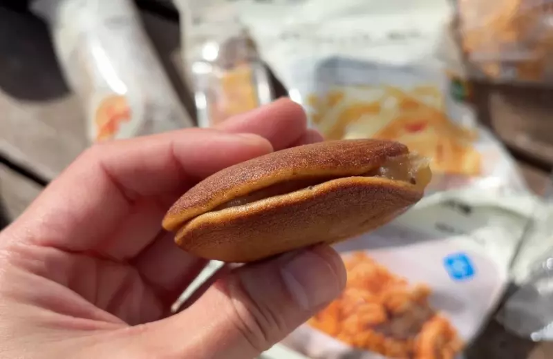 八つ目は「紅はるかの芋どら焼き」。ふんわりとした生地の中に、紅はるかのペーストがたっぷり入った一口サイズのどら焼きです。しっとりとした食感と自然な甘さが特徴で、登山中に疲れた体にやさしく染み渡ります。糖質がしっかり取れるため、行動中のエネルギー補給に最適。しかも、どら焼きながら個包装で持ち運びしやすく、ザックの中でつぶれにくいのがポイントです。