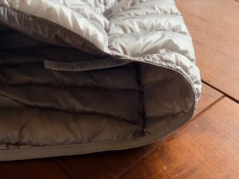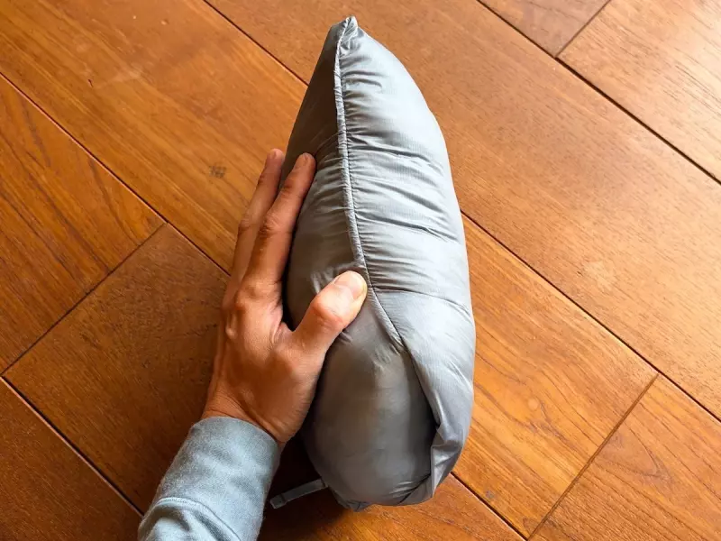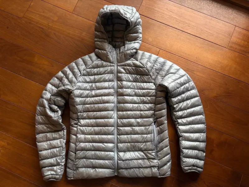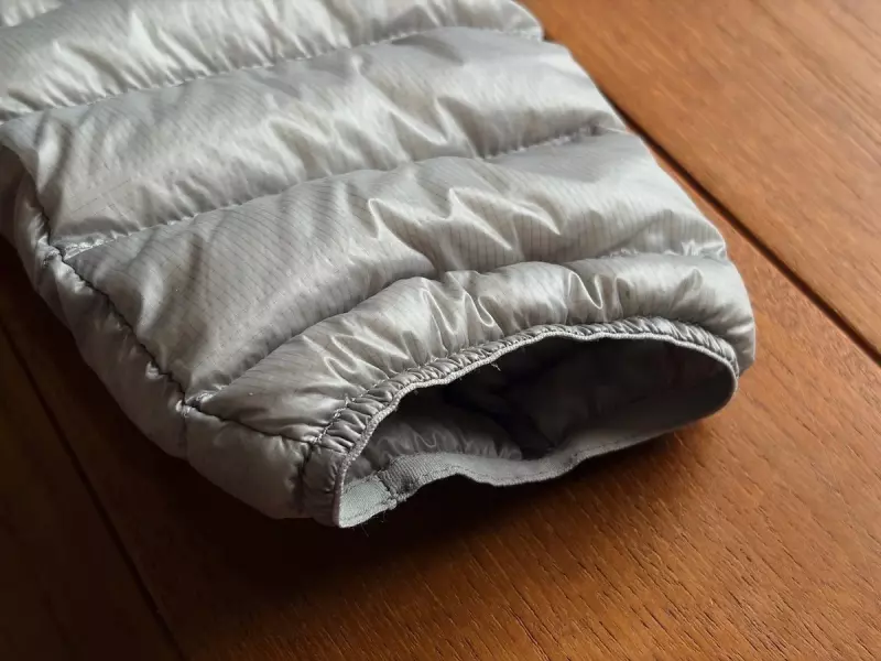 一般的な軽量ダウンの多くは、袖口や裾にドローコード、フードにアジャスターを備えていますが、このモデルではそれらを一切排除。その潔さが、圧倒的な軽量化に直結しています。