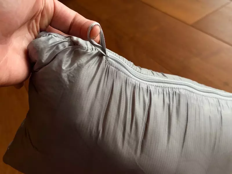 シェル/ライニングの手触りはハリがあり、頼りなさは感じません。軽さと耐久性を両立した、まさに"実用レベル"のウルトラライト素材です。