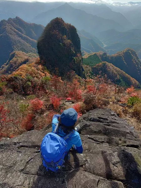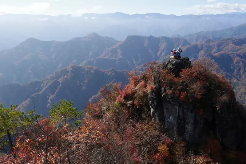 登山ルートは一ノ岳から二ノ岳へと続く周回コースが定番で、痩せ尾根や岩場などスリルも味わえる構成。頂上に立てば、妙義山や浅間山、遠く八ヶ岳まで見渡せる大パノラマが広がり、秋晴れの空と紅葉の山並み、そして岩場のスリルが織りなす体験は登山の醍醐味。コンパクトながら絶景・スリルと緊張感が詰まった鹿岳。感動でゾクゾクできる一日になるはずです。