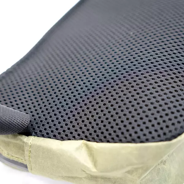 この素材は、リサイクルナイロンをベースにした環境配慮型でありながら、アウトドアに求められる"伸縮性・耐久性・ホールド力"を非常に高いレベルで備えています。指で軽く引くだけでスッと広がり、手を離せばしっかり元の形状へ戻る──そのしなやかさと回復力は、一般的なメッシュとは次元が違います。