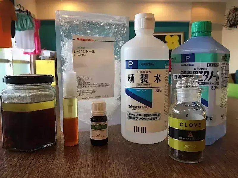 - ハッカ油1:シトロネラオイル2:消毒用エタノール20:イカリジン20