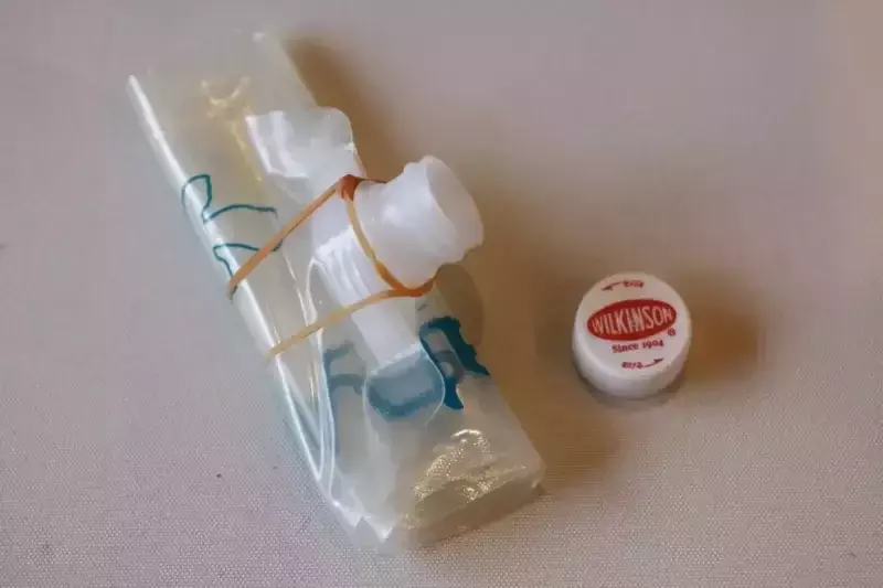 ペットボトルの蓋の真ん中に穴をあけたものを自作して持参します。これを、水を入れたプラティパスの蓋として取り付け、怪我をしたところに勢いよく水を当てると傷口についた汚れを落とすことができます。水を入れる容器はペットボトルでも構いません。