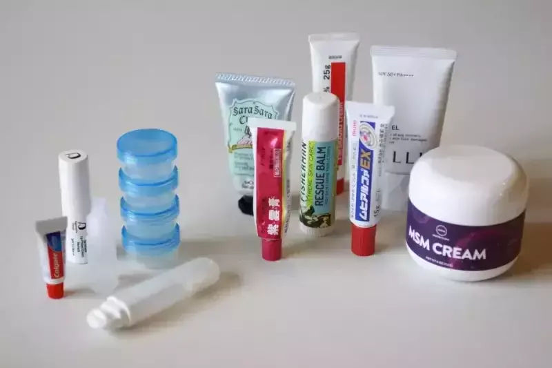 小さなケースに詰め替えて蓋にネームシールを付けておけば、コンパクトにまとまり軽量化できます。