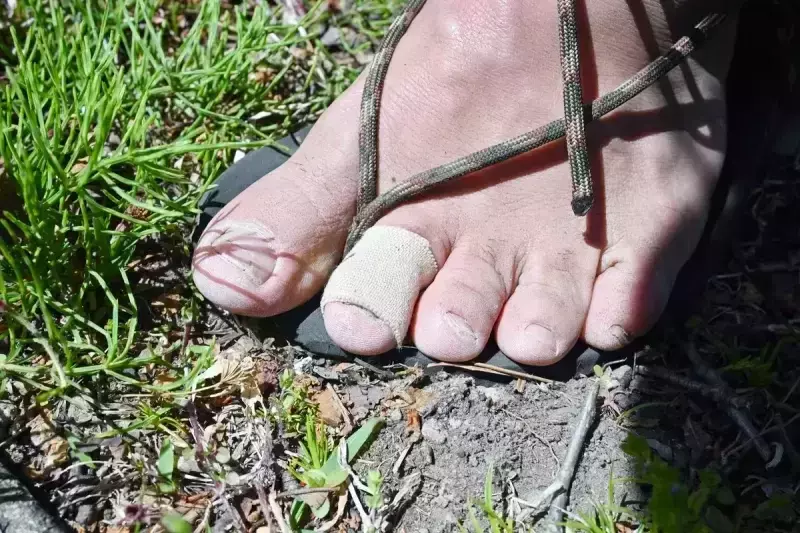 また、長時間の歩行で靴擦れを起こしたり、疲労で足がつったり痙攣したり、指先にトゲが刺さったりすることもあります。