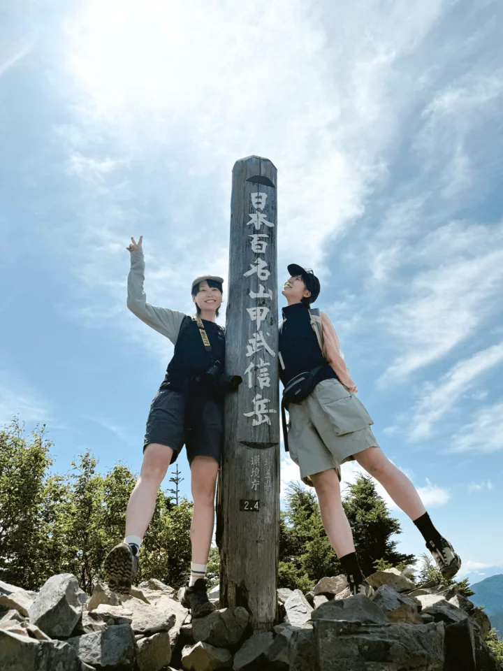 大きな岩が聳える瑞牆山みたいな山梨らしさ、陽が優しく地面が柔らかい雲取山のような埼玉らしさ、もこもこの苔がそこらじゅうで観察できる八ヶ岳のような長野らしさ。これらが特段融合するわけでもなく、それぞれに存在感を放つ甲武信ヶ岳は結局どんな山なのかよくわからない。でも作品のいいところを掛け算していったらそれはもうオリジナルになるのであると、私たち日本人は『呪術廻戦』との出会いにより知っている。ということでめちゃくちゃ渋くてかっこいい山頂標識に着いた時には流石に嬉しかった。