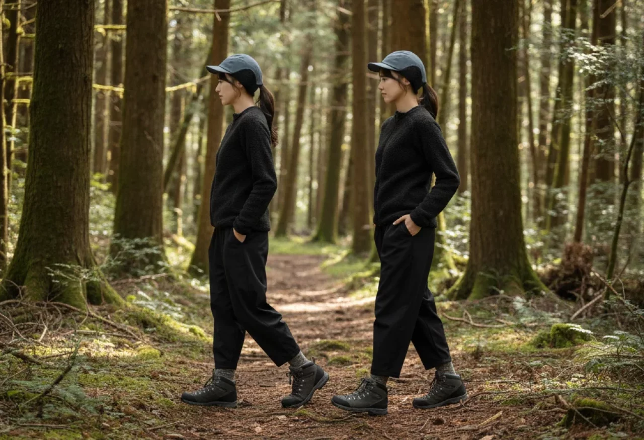 冬は防風性重視で、**Rabの「Kinetic 2.0 Jacket」**を愛用。透湿性が高く(35,000g)、ソフトシェルのように動きやすく音が静かなのが特徴です。レインパンツは脱ぎ着しやすいゴアテックスパックライトのものを好んでいます。
