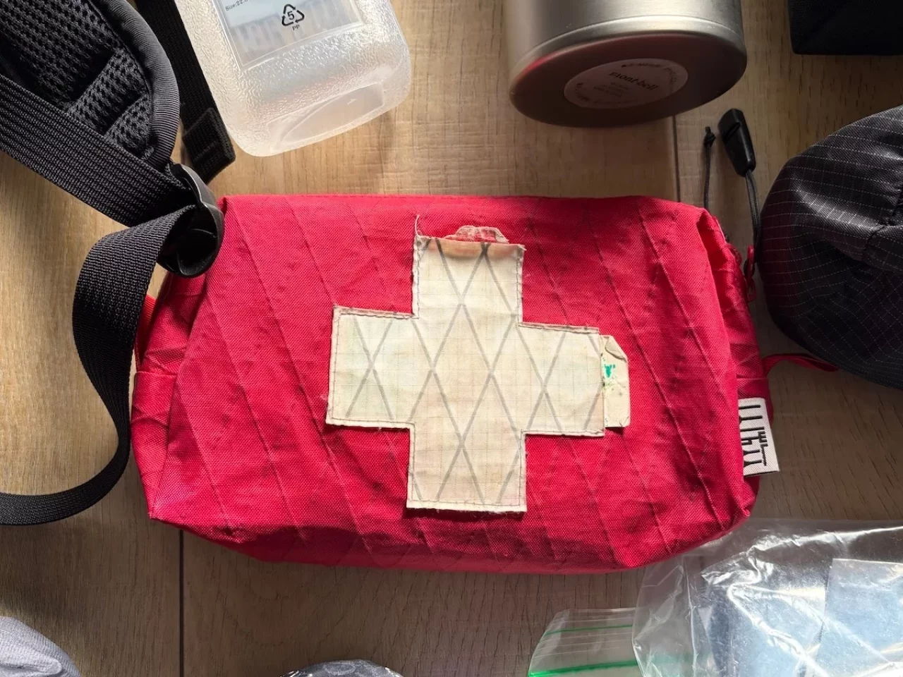 テーピング、絆創膏、予備手袋、マルチツール、足のつり防止の「芍薬甘草湯」、エネルギーゼリーなどを常備しています。