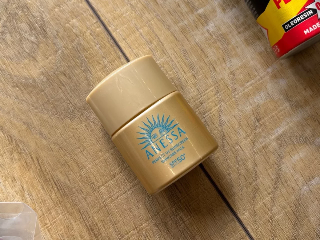 日焼け止めはアネッサの12ml容器に詰め替えて使用(酸化を防ぐため当日使い切り推奨)。
