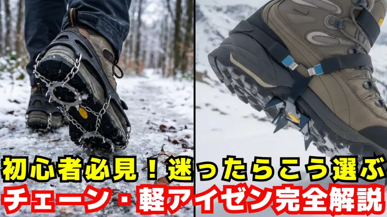 登山道を安全に歩くための装備として、足元の滑り止めは非常に重要です。特に雪が残る季節や、雨上がりで滑りやすい環境下では、アイゼンの有無が登山の安全性を大きく左右します。しかし、一口に滑り止めと言っても、「チェーンアイゼン(チェーンスパイク)」と「軽アイゼン」「アイゼン」の3種類があり、何を選ぶべきか迷われる方も多いのではないでしょうか。
