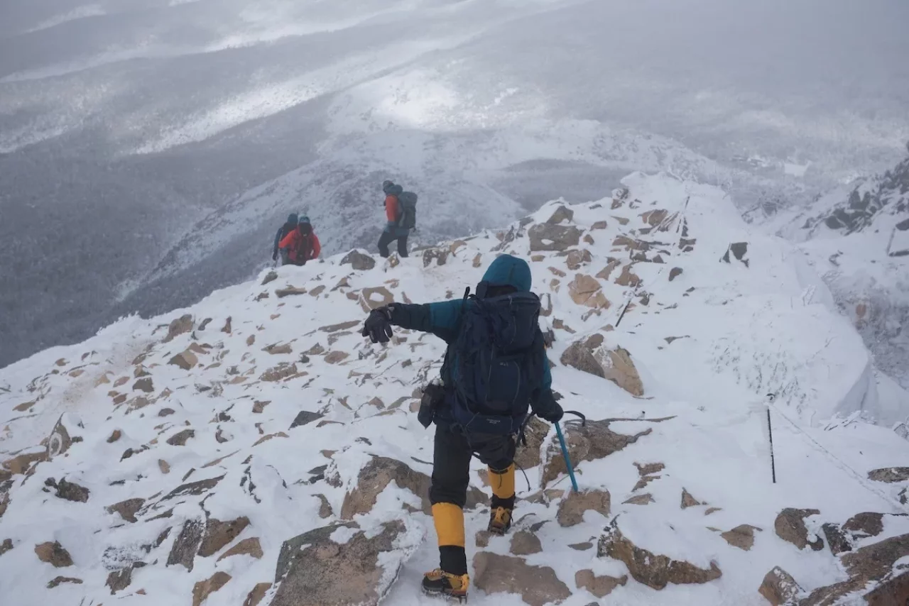 凍結した硬い登山道や氷の上であれば、チェーンアイゼンでもしっかりとグリップが効き、安定して歩くことができます。しかし、積雪量が増えてくると注意が必要です。雪が深く積もっている場合、チェーンアイゼンの短い爪では表面の柔らかい雪を捉えるだけで、その下にある硬い雪や氷の層まで爪が届きません。結果として、雪ごと滑ってしまうことがあるため、深雪には不向きとされています。
