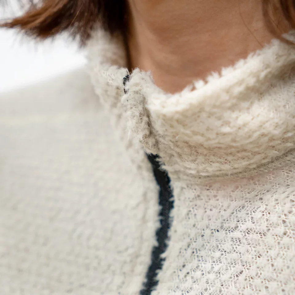 ベンチレーション機能: 下側のジッパーを跳ね上げることで、お腹周りから外気を取り込めます。首元を保温したまま体幹の熱を逃がせるため、急な登りでのオーバーヒートを防ぎます。