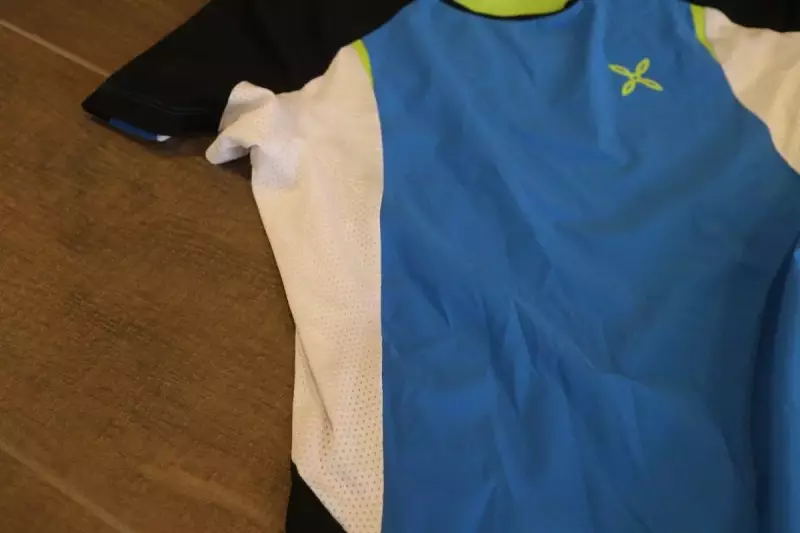 肩、後面パネル、および上袖は、UVカットと速乾性を特徴とした生地を採用しています。