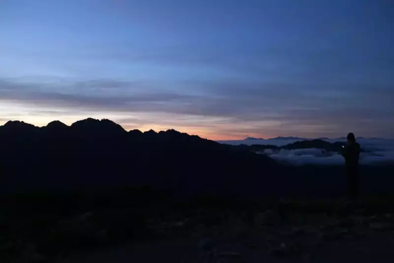 5日間の縦走も今日が最終日。朝起きるとひんやりとした空気が肌を刺す。まずは暗闇の中、ヘッドライトの明かりをたよりに笠ヶ岳の山荘のトイレへ。テント場から山荘へは足場の悪い岩場を、矢印に従って登っていく。朝から結構な運動量だ。
