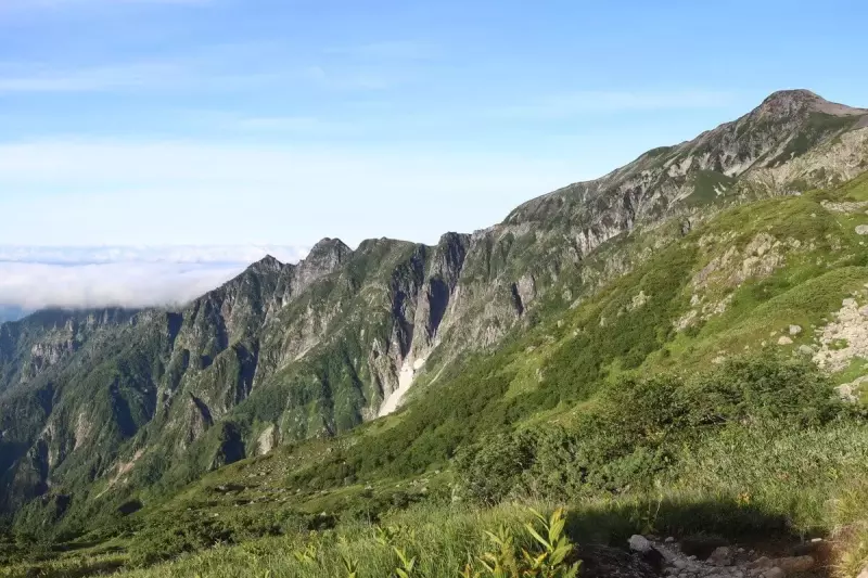 この笠新道は、北アルプスの中でも非常に急登で有名なのは、この時にはまだ知らず。降りてみて、その過酷さから、登るのは相当に辛いだろうことが解った。しかし、頂上に近づくに連れ、疲れが吹き飛ぶような景色が待っている事だろう。そんな雄大で美しい景色が、下山開始間際の僕の心を包み込む。