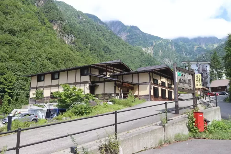 お目当ての温泉まで歩くこと、約40分。中崎山荘 奥飛騨の湯で疲れを癒す。ここからバス停まで直ぐという立地もうれしい。