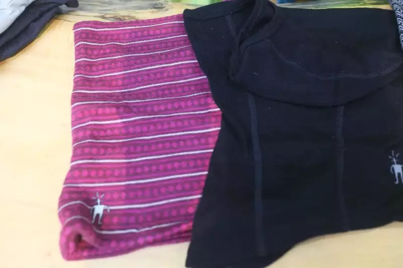 それぞれのアイテムの組み合わせ方ですが、パタゴニアのニット帽+スマートウールのネックウォーマーもしくはスマートウールのヘッドバンド+ネックウォーマーのいずれかの登場回数が多く、バラクラバは吹きさらしをずっと歩かなくてはいけない場合や、どうしようもなく寒いという緊急時のみに使用するような使い分けをしています。