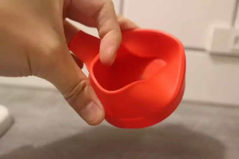 商品説明 | カップに内側のツマミ部分を引き上げると、折りたたまれていたカップの縁が立ち上がります |