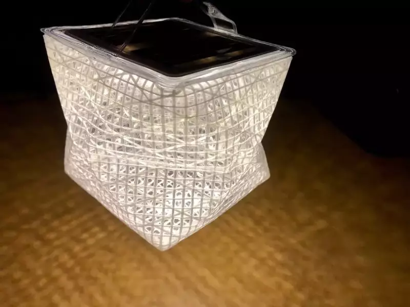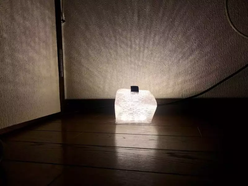 そして、なによりも魅力的なのが闇を灯す、幻想的な明かりだ。キューブ状に広げた際、セイル生地がLED灯の明かりを、一層輝かしく拡散。置くだけでもいいが、できれば高いところに吊るして、灯すのがベストだろう。