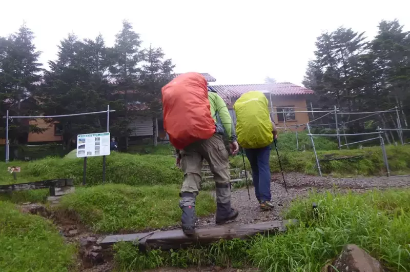 御来光館です。雨模様の天気が続いています。スッキリと晴れて欲しいですね。