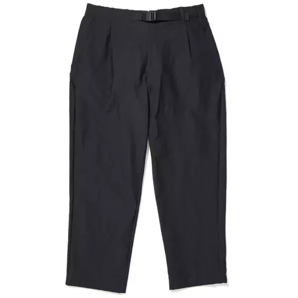 ワンタックを入れてややワイドに仕上げ、裾にかけてはテーパードシルエットに。ウエストは、バックルのカジュアルな仕様。ナイロンをメインにした素材はドライタッチで、快適な穿き心地。右の腰ポケットの脇にはファスナー付きセキュリティポケットがあり、鍵やパスポートなどの収納に重宝。バックポケットは、ヒップラインに沿うようカーブさせた切り替えラインを生かして配置。大きめのため収納力があり、シンプルな 1 着のデザインアクセントにもなっている。同素材のジャケットとのセットアップもおすすめ。