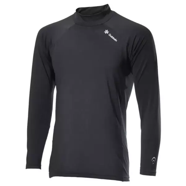 高いストレッチ性のある素材と、独自の立体設計により、ダイナミックな身体の動きにもしなやかに追従。UVプロテクト(UPF50+、紫外線カット率95%以上※30%伸長時のデータ)機能付きで、強い日差しに対応。首まわりも暖かいハイネックタイプは、冬場のゴルフや野球をはじめ、ウィンタースポーツやトレッキングなどにも活躍。