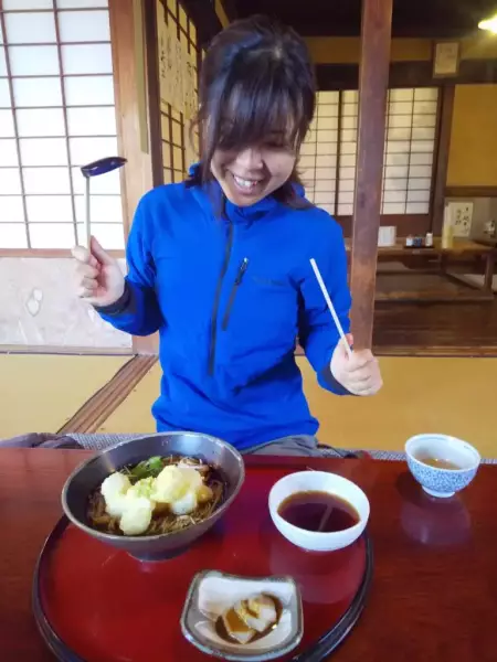 お昼には餅の天ぷらののった美味しいお蕎麦も食べましたヨ~@矢的庵