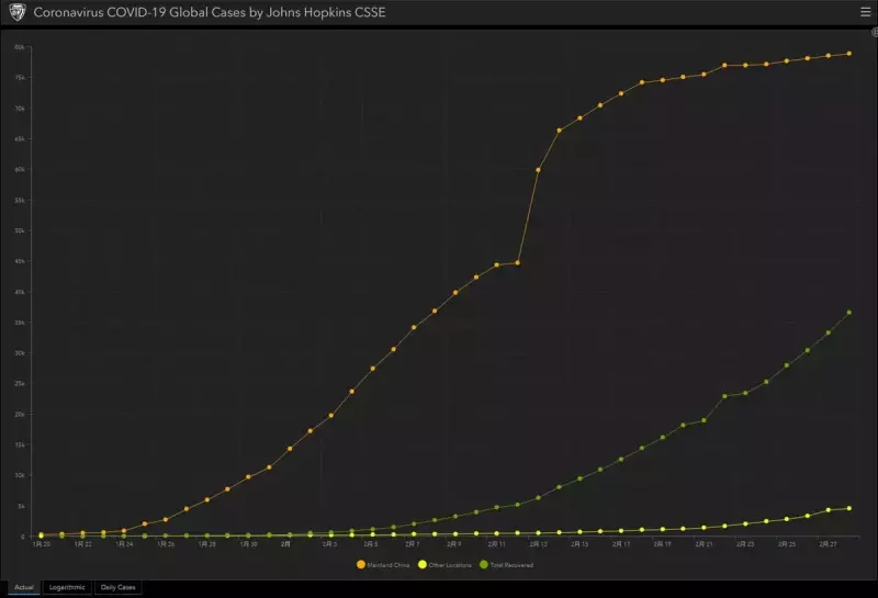 リアルタイムでコロナウイルス感染者を追跡するインタラクティブなツールは「Coronavirus COVID-19 Global Cases by Johns Hopkins CSSE」です。