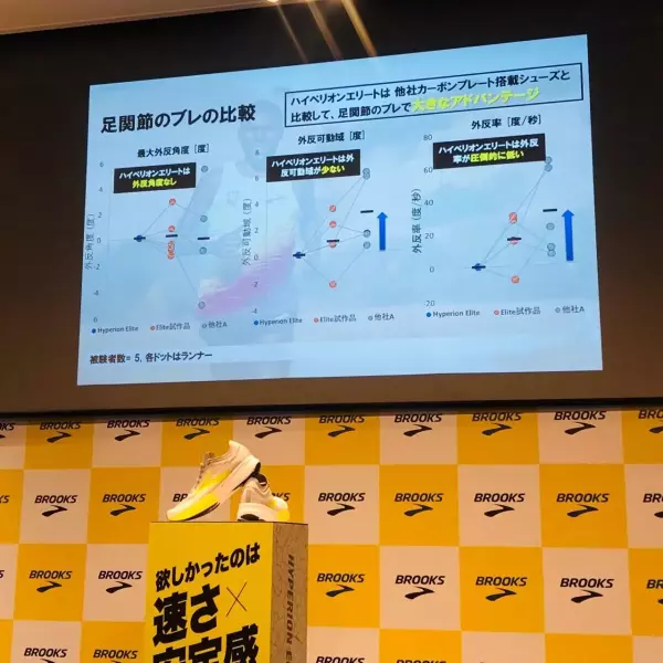 独自のミッドソール材とカーボンプレートを搭載している。走行中の足首やその付近のブレが競合品より少なく(「BROOKS」社データ)、レース後半までの走力を出来るだけ温存し、より速くより長く走れるのが特徴だ。