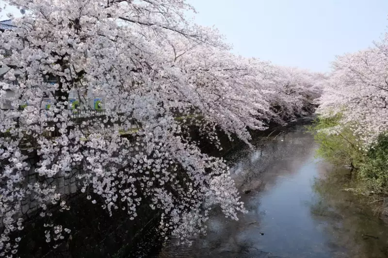 3月下旬〜4月中旬には満開の桜が咲き乱れ、町がピンク色に染まる。