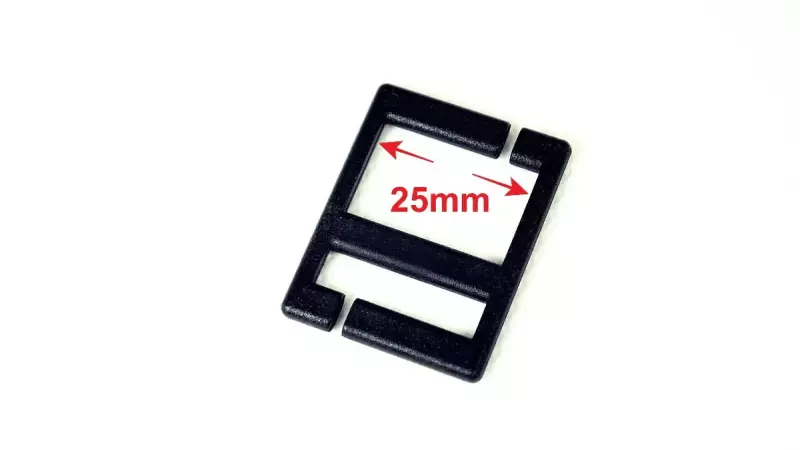 注意点3:紐幅25mmまでの紐端を通すことが出来ますが、23~25mm幅用として設計されています。違ったサイズの紐端で使用すると綺麗に巻き留めておくことが出来ません。
