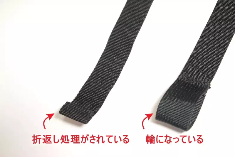 注意点1:落下して紛失する恐れがありますので、上記の写真のように紐端が折返し処理されているタイプか、輪になっているタイプのリュックでご使用ください。