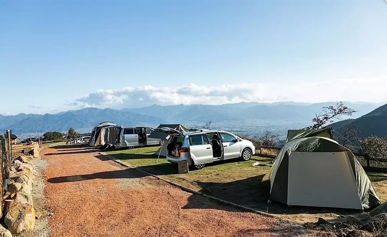 甲府盆地を一望できる絶景が楽しめるキャンプ場がパインウッドキャンプ場。自然の景色が楽しめるにも関わらず甲府駅からは車で約25分というアクセスしやすいのも魅力だ。