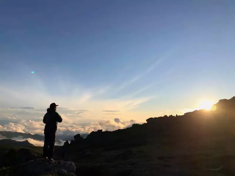 忠別岳から上がる朝陽を受けて。