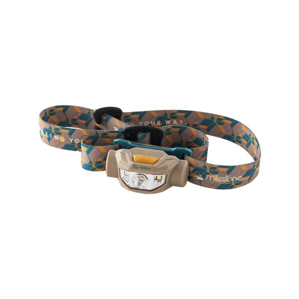 単3乾電池×1本で稼働する超軽量、コンパクトヘッドランプ。明るさ最大180ルーメンを誇る電球色LEDをメインに、サブLEDには白色、赤色LEDを搭載。