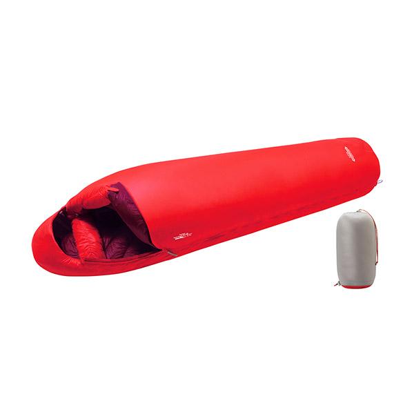 女性が快適な睡眠をとれるように設計した軽量スリーピングバッグ。独自の「スパイダーバッフルシステム」を搭載しています。